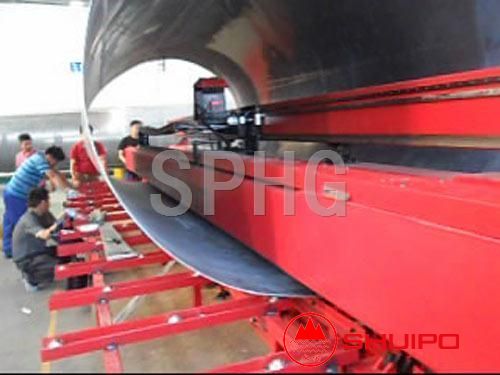 罐體制造自動化生產線研發了罐體制造從鋼板下料、板材銑邊、鋼板對接、卷筒、整形、組裝、焊接、成形等加工工序的先進制造工藝和各工工序上自動化制造裝備;開發一套遠程集中控制系統,實現制造工藝編制、生產計劃安排、生產過程監控、生產和物料管理等一體化控制。