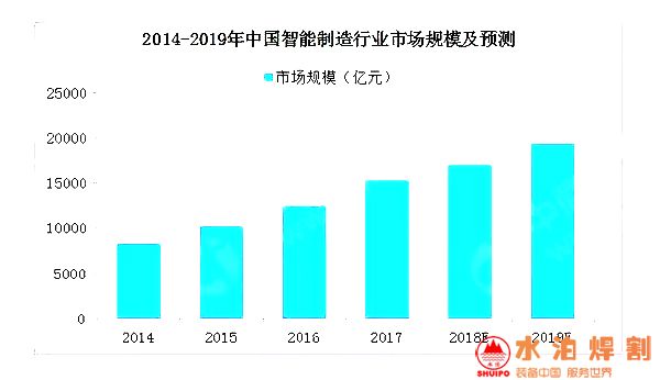 在國家政策推動(dòng),制造業(yè)技術(shù)轉(zhuǎn)型升級等背景下,中國智能制造產(chǎn)業(yè)發(fā)展迅速,對產(chǎn)業(yè)發(fā)展和分工格局帶來深刻影響。數(shù)據(jù)顯示,2017年中國智能制造行業(yè)市場規(guī)模為15150億元,增長率為22.6%,伴隨著技術(shù)的逐漸完善,應(yīng)用產(chǎn)業(yè)的不斷拓展,市場規(guī)模將持續(xù)增長,預(yù)計(jì)2019年市場規(guī)模將超19000億元。
